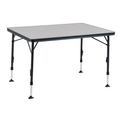 Tavolo in alluminio particolarmente robusto con bordo in MDF resistente alle intemperie e calore. Le quattro gambe sono infinitamente regolabili in altezza, le gambe della piastra assicurano un perfetto supporto.